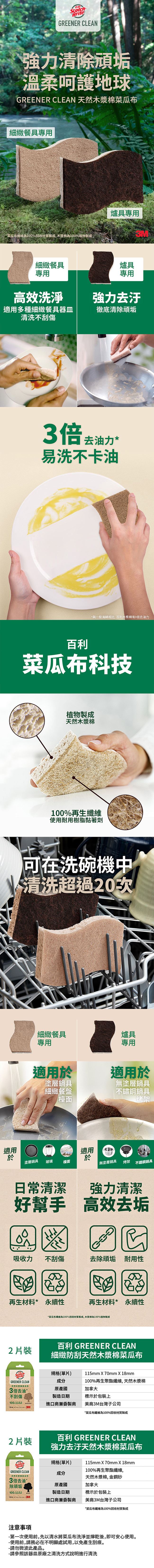 商品名稱 | 3M百利天然木漿棉菜瓜布再生纖維(爐具專用/細緻餐具專用)2片裝x8 |
