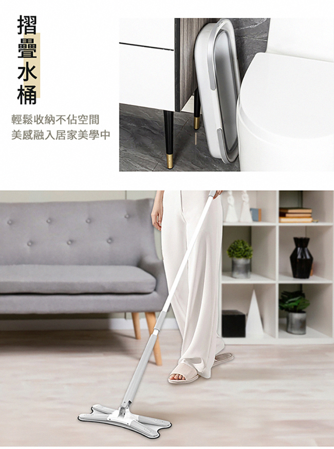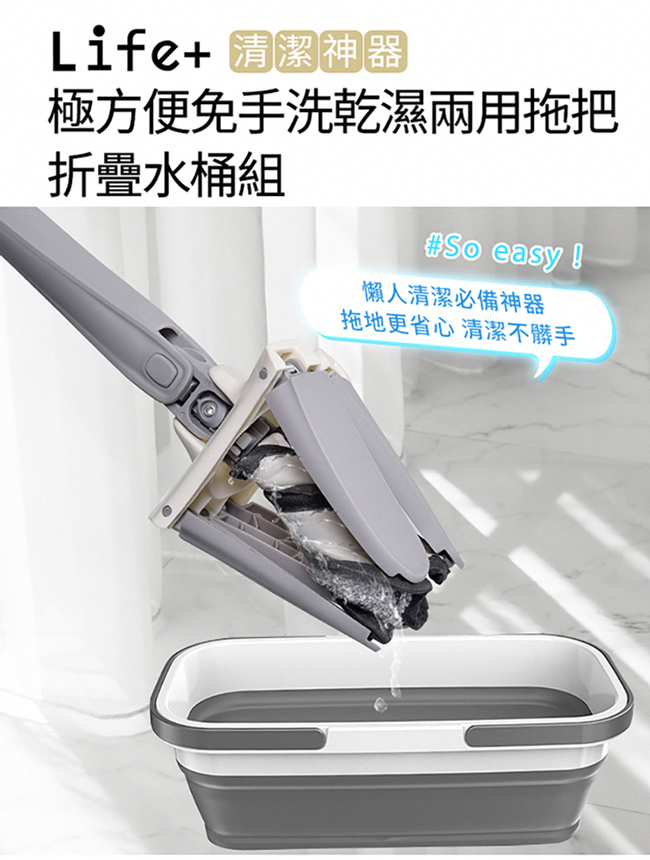 商品名稱 | 極方便免手洗乾濕兩用拖把折疊水桶組(1桿1桶2吸水布) |