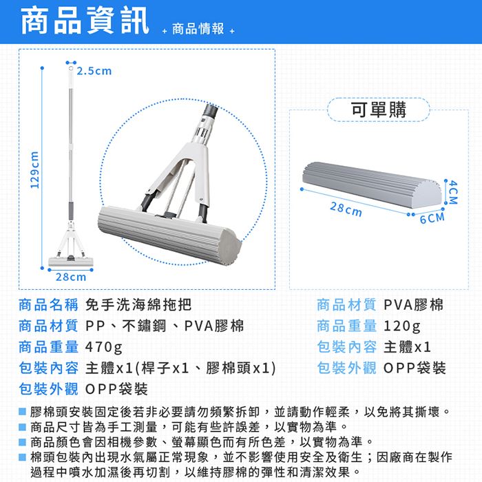 商品名稱 | 【買一送一】免手洗膠棉拖把 |
