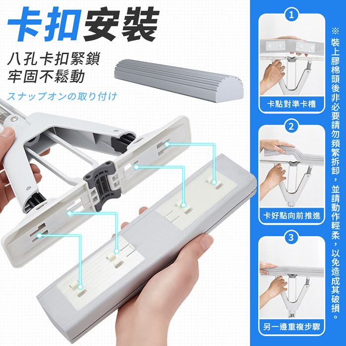 注意事項 | 【安裝步驟】 step1:卡點對準卡槽step2:卡好點向前推進step3:另一邊重複步驟 ※膠棉頭安裝固定後若非必要請勿頻繁拆卸,並請動作輕柔,以免將其撕壞。 ※膠棉頭包裝內出現水氣屬正常現象,並不影響使用安全性;是廠商在製作過程中噴水加濕後再切割,以維持膠棉的彈性和清潔效果。 ※請放置於陰涼乾燥、兒童無法觸及之處。 ※商品因環境光線、相機參數、螢幕顯色的不同,可能會有些許色差,請以實際收到商品為準。 ※產品尺寸為手工測量會有些許誤差,請以實際收到商品為準。 |