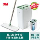 3M 百利輕巧型免手洗平板拖把刮水桶-莫蘭迪綠(1桿1桶1吸水布)